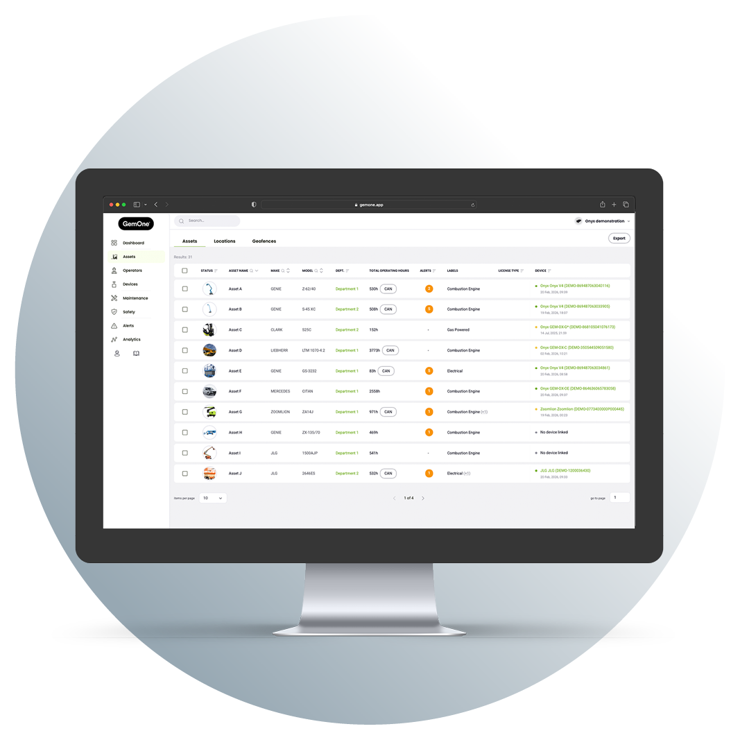 GemOne’s systems closely monitor your machines and present the captured data in clear and personalised reports. Know how your fleet is being used at any time. Easily detect where there is room for improvement.